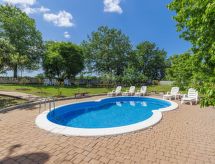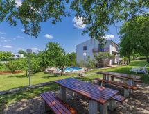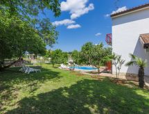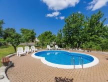 Jehnići 8 km from Poreč: 3-family house Ana. In a quiet, sunny position, 11 km from the sea, in the countryside. For shared use: property 3'000 m2, plants and trees, meadow, swimming pool (7 x 5 m, depth 150 cm, seasonal availability: 25.May. - 21.Sep.). Outdoor shower, garden furniture, barbecue. In the house: internet access. Parking at the house on the premises. Shop 3 km, restaurant 3 km, bus stop 10 km, public bathing area 8 km. Please note: suitable for families. Additional accommodations can be booked. Youth groups are not allowed. The swimming pool is oval shaped.