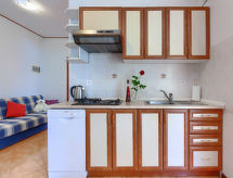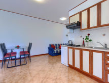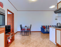 Accommodatie Nr.3-room apartment 49 m2, on the ground floor. Cosy furnishings: living/dining room with satellite TV and air conditioning. Exit to the terrace. 1 room with 1 french bed (160 cm, length 200 cm). 1 room with 1 french bed (160 cm, length 200 cm). Exit to the balcony. Open kitchen (4 hot plates, oven, dishwasher, freezer). Shower/WC. No heating option. Balcony 5 m2, terrace 15 m2, roofed. Terrace furniture. View of the swimming pool and the countryside. Facilities: washing machine. Internet (WiFi, free).