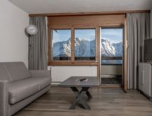 Accommodatie Nr.60 m2. More information by the provider: Spend your best time of the year at Zurschmitten Ferienwohnungen on the Riederalp. Stay in a centrally located, renovated 2-room holiday flat for 2 to 4 people with a balcony below the Riederalp Mitte mountain station. In winter there is direct access to the Moosfluh ski lift. From our house you can reach the cable car to Mörel, the Coop, the golf course, the bank, the post office and the ski lifts in 2 minutes. In the house itself there is also a bakery and a tea room with a marvellous sun terrace.The holiday flat is suitable for 2 to 4 people. It has 1 bedroom with a double bed (2 separate mattresses, 180x200cm) and the sofa in the living room can be converted into a comfortable sofa bed. There is also a fully equipped kitchen and a bathroom with shower/WC. Free WLAN as well as bed linen and towels are also included. Breakfast can be booked on request for CHF 10 per person/night. Pets are not allowed.Included: bed linen and towels, final cleaning, electricity, heating, water, WLAN. Exclusive: tourist tax.