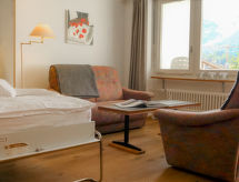 Large apartment house Beaulieu, 5 storeys. In the district of Wiesti, 750 m from the centre, in a quiet, sunny position in the residential district, south facing position. In the house: lift, storage room for skis, central heating system. Supermarket 550 m, restaurant 200 m, bakery 750 m, bus stop Wiestibrücke 300 m, railway station Bahnhof Zermatt 750 m. Mountain railway 400 m, ski rental 400 m, ski bus stop 300 m, ski school 950 m, children's ski school. The keys‘ handover takes place by the agency Interhome in Zermatt.